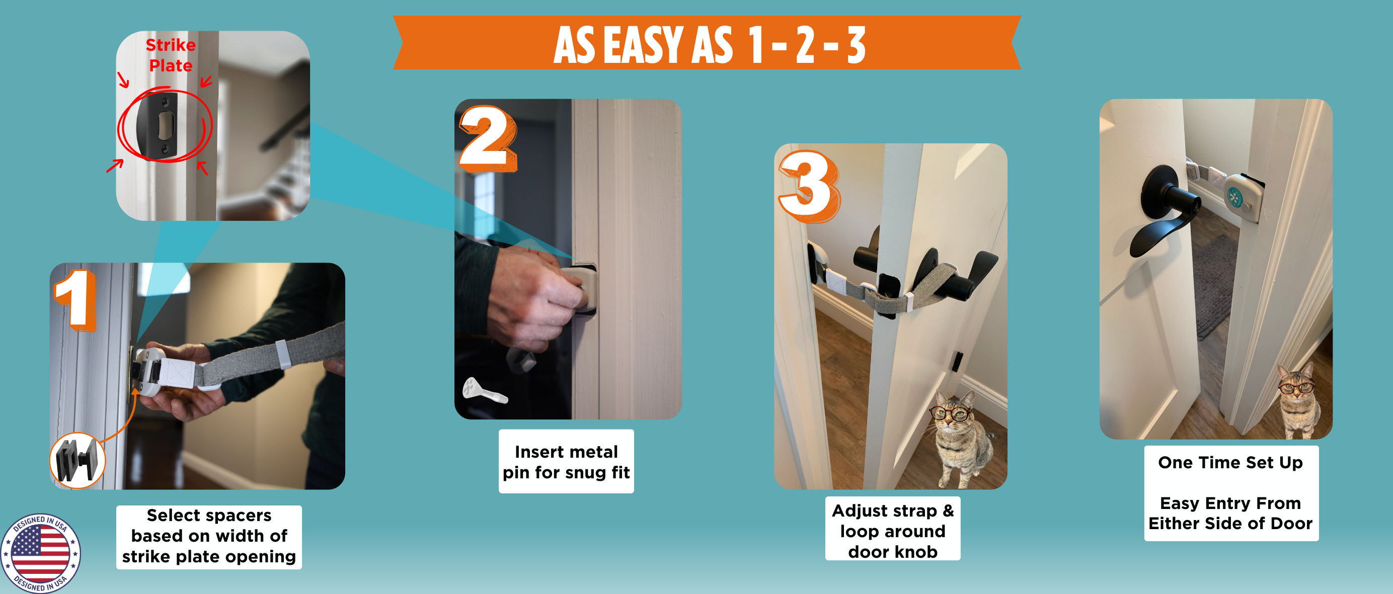 Purrboss Door Leash– Easy Cat Door Latch to Keep Doors Open for Pets, Dog-Proof Pet Gate Alternative for Feeding & Litter Box Areas