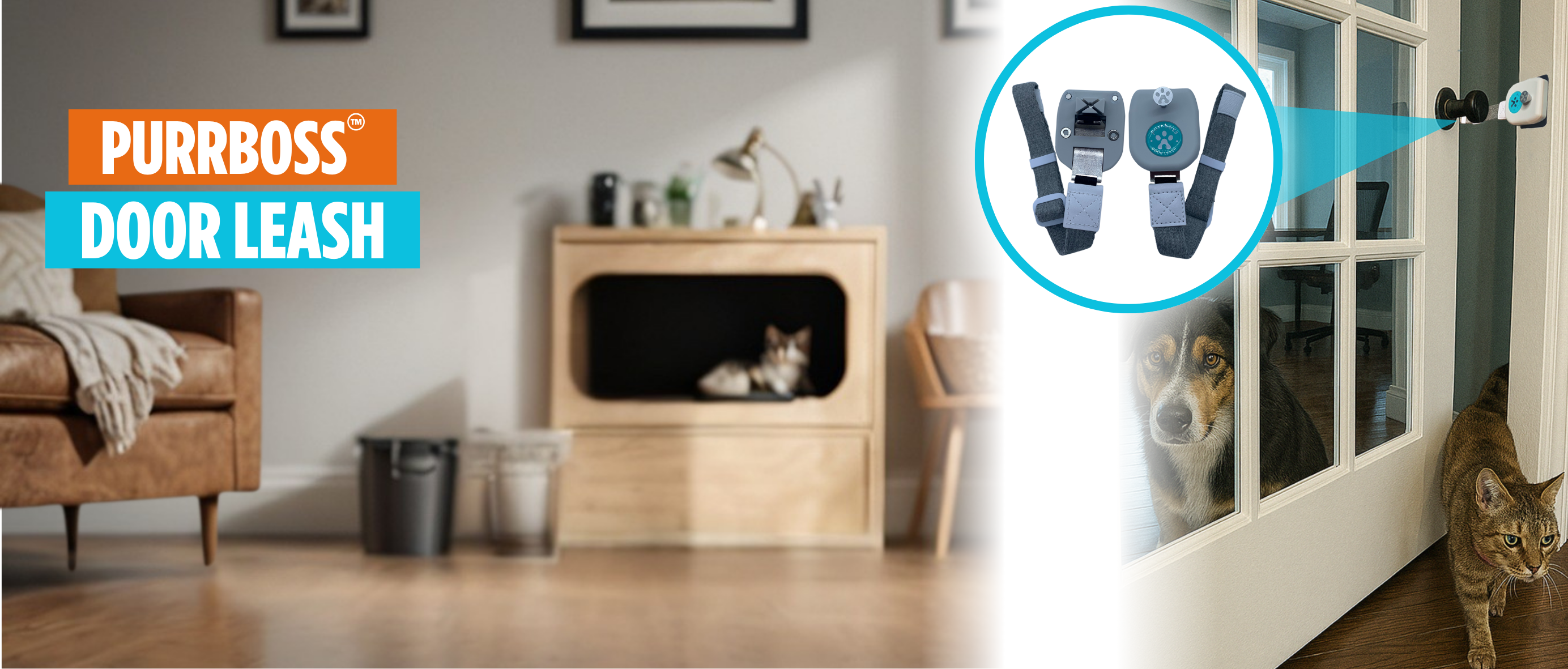 Purrboss Door Leash– Easy Cat Door Latch to Keep Doors Open for Pets, Dog-Proof Pet Gate Alternative for Feeding & Litter Box Areas